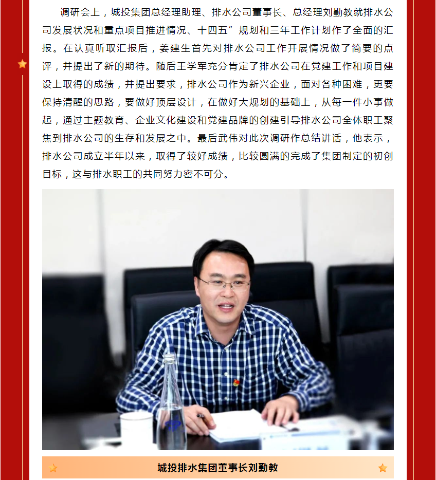 凝心聚力抓项目 科学谋划促发展-济南城投集团董事长武伟调研排水公司