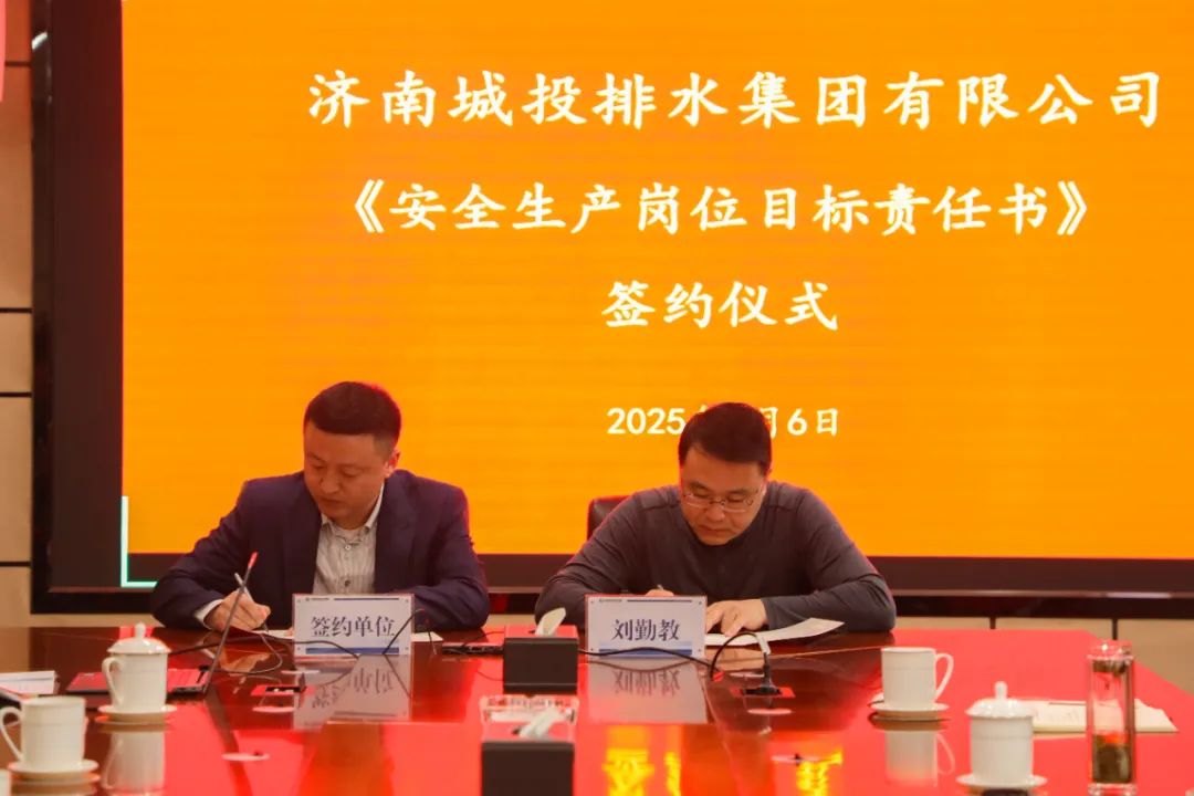 会议首先观看了复工复产安全生产警示教育片,共同学习了市安委办《关于做好全国、全省“两会”及春节期间安全防范工作的通知》《关于扎实开展开工“第一课”活动加强复工复产安全防范工作的通知》,刘勤教与市场开发部、济南普发水务工程有限公司等代表单位签订2025年安全生产岗位目标责任书。